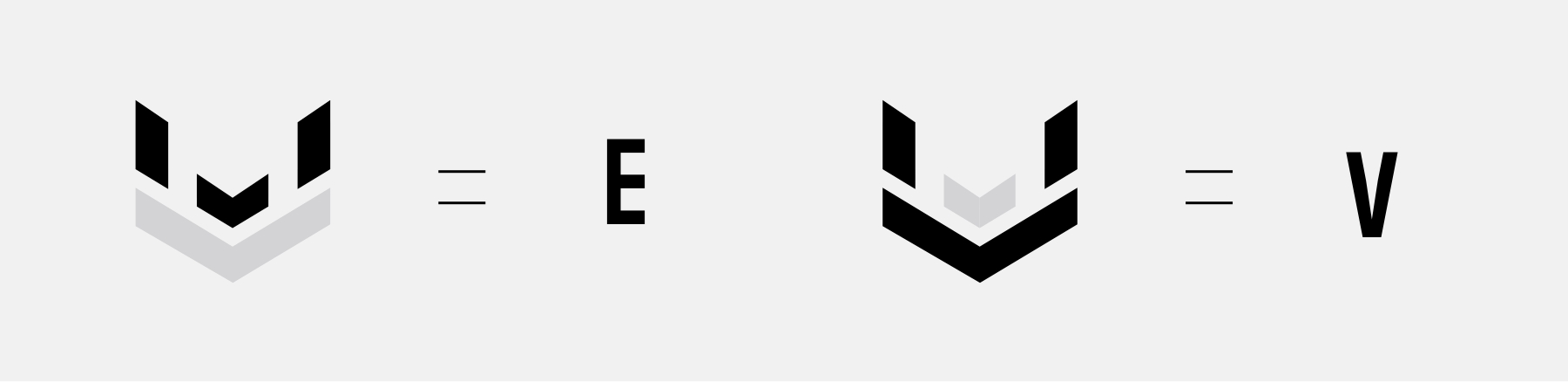 De letters E en V worden op volgende manier in het primaire logo weergegeven.
