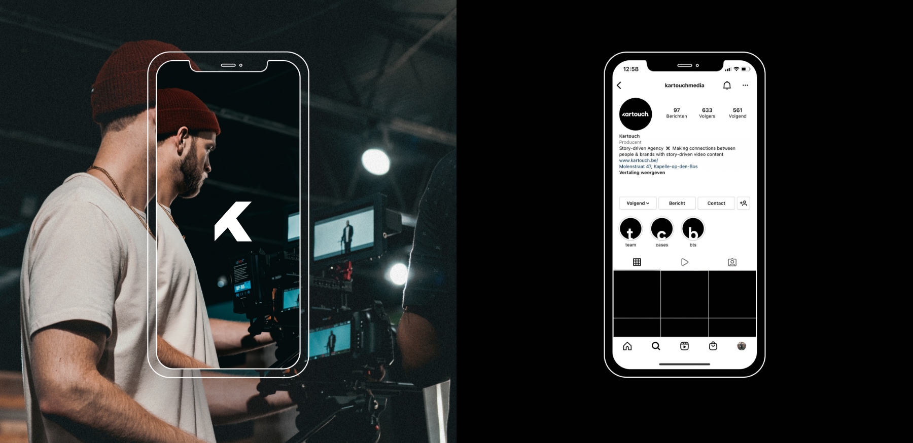 Wij hadden de opportuniteit om mee te werken aan de rebranding van Kartouch Media. Ze onderscheiden zich in de markt als een story-driven video agency. Naast het ontwerpen van hun website hebben we dit ook geïmplementeerd met behulp van een CMS-systeem.